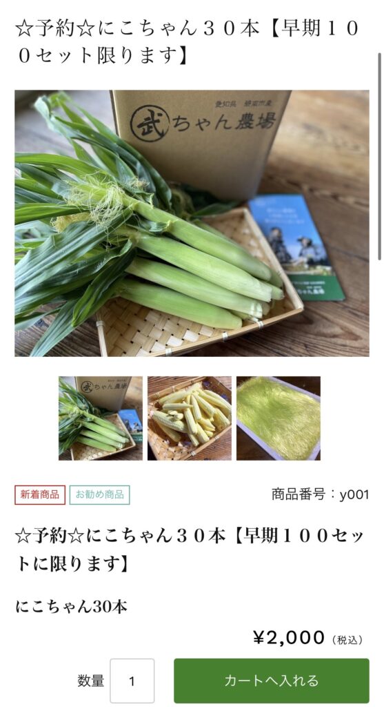 武ちゃん農場のベビーコーン「にこちゃん」