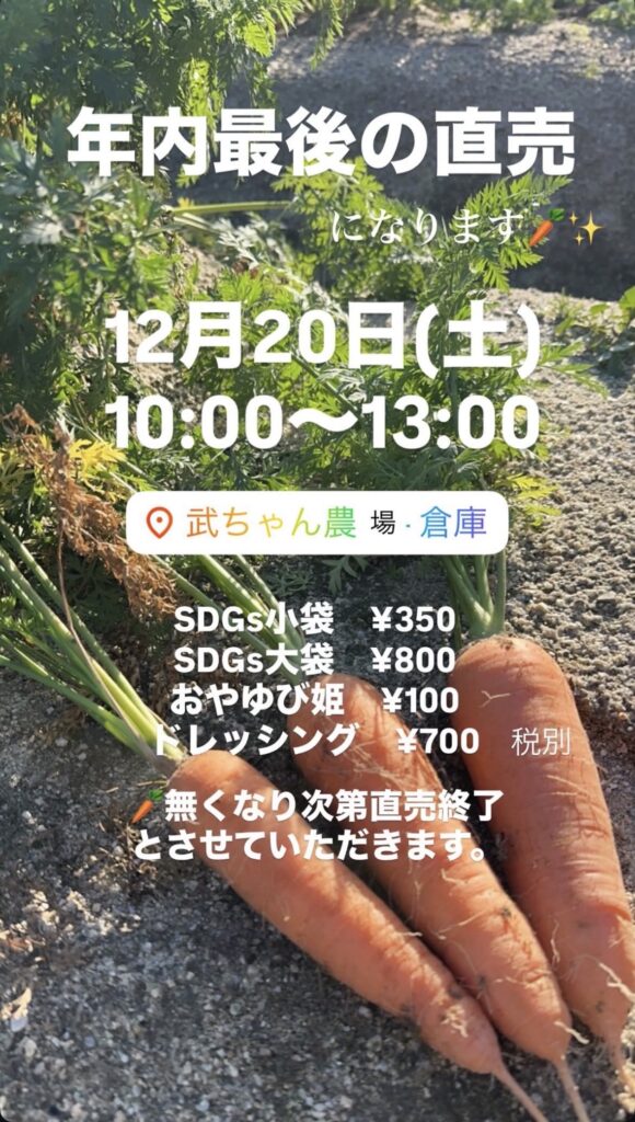 武ちゃん農場のホームページのオンラインサイトで購入いただけます🥕